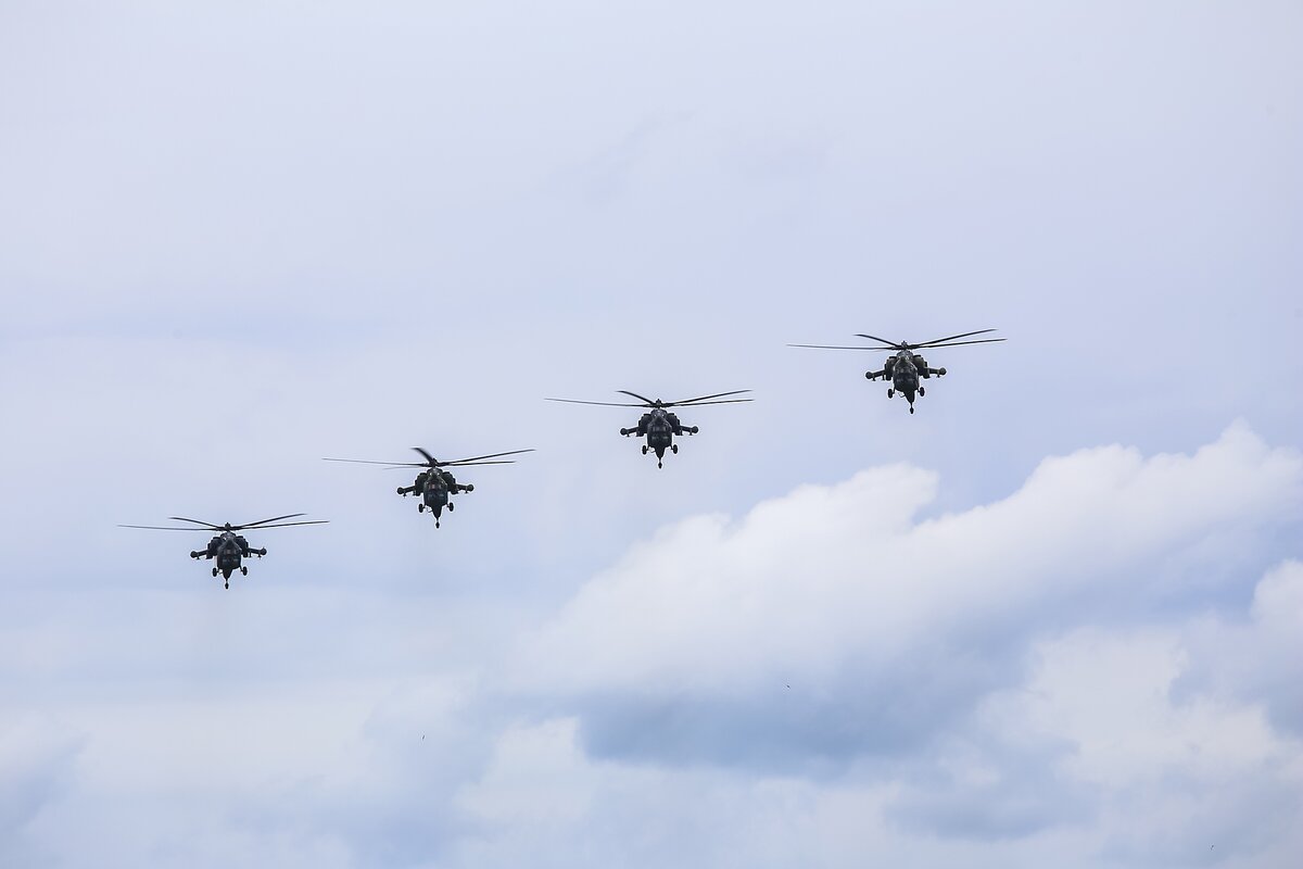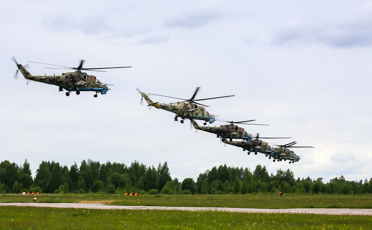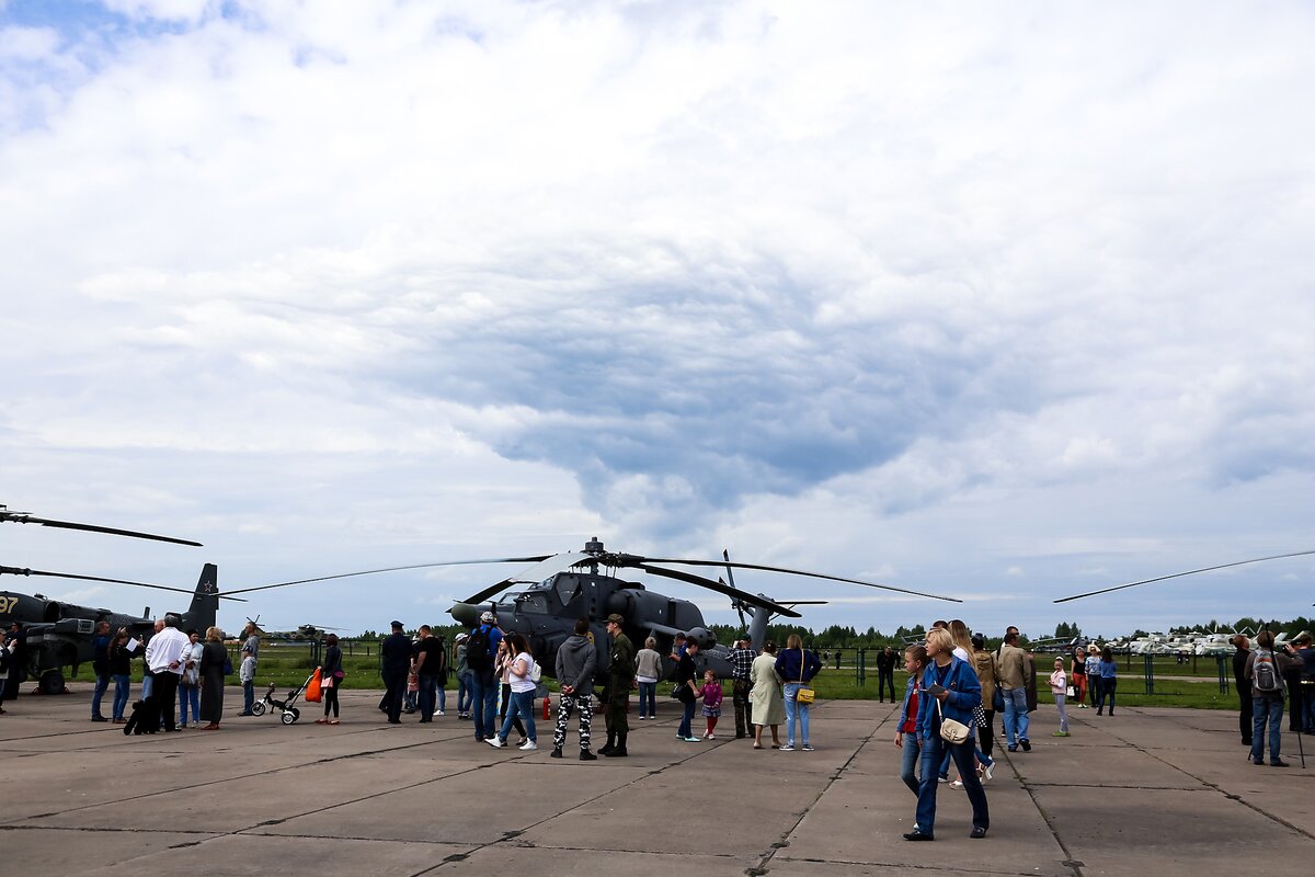 На выставке техники представили новейшие образцы транспортных и ударных вертолетов: Ми-28Н "Ночной охотник", Ка-52 "Аллигатор", Ми-35М, Ми-26Т, Ми-8АМТШ "Терминатор", Ми-8АМТШ-ВА (арктический).