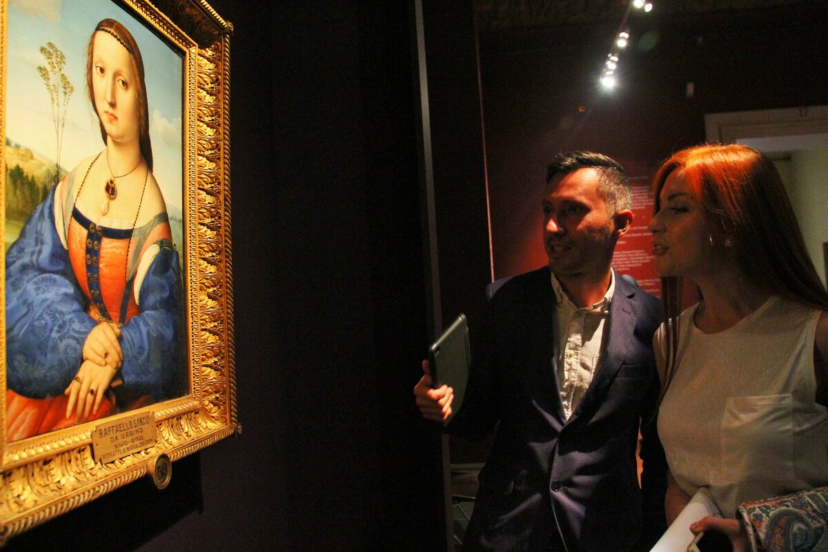 В залах музея представлены восемь картин и три рисунка руки Рафаэля, которые обычно выставлены в Италии, в том числе в флорентийской Галерее Уфицци.