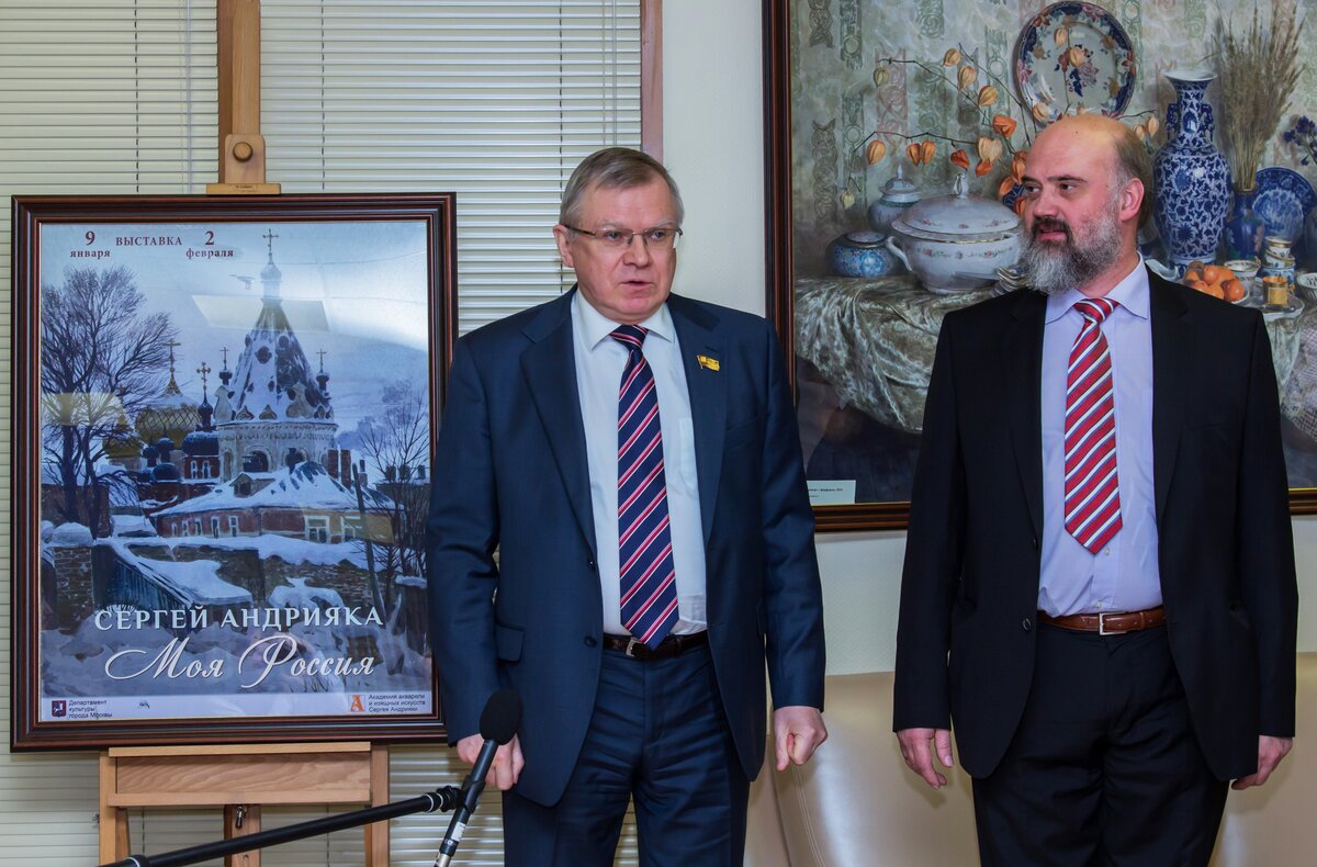 15 января в Мосгордуме открылась выставка работ художника Сергея Андрияки. В церемонии принял участие председатель Московской городской Думы Владимир Платонов.