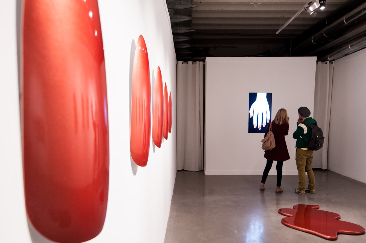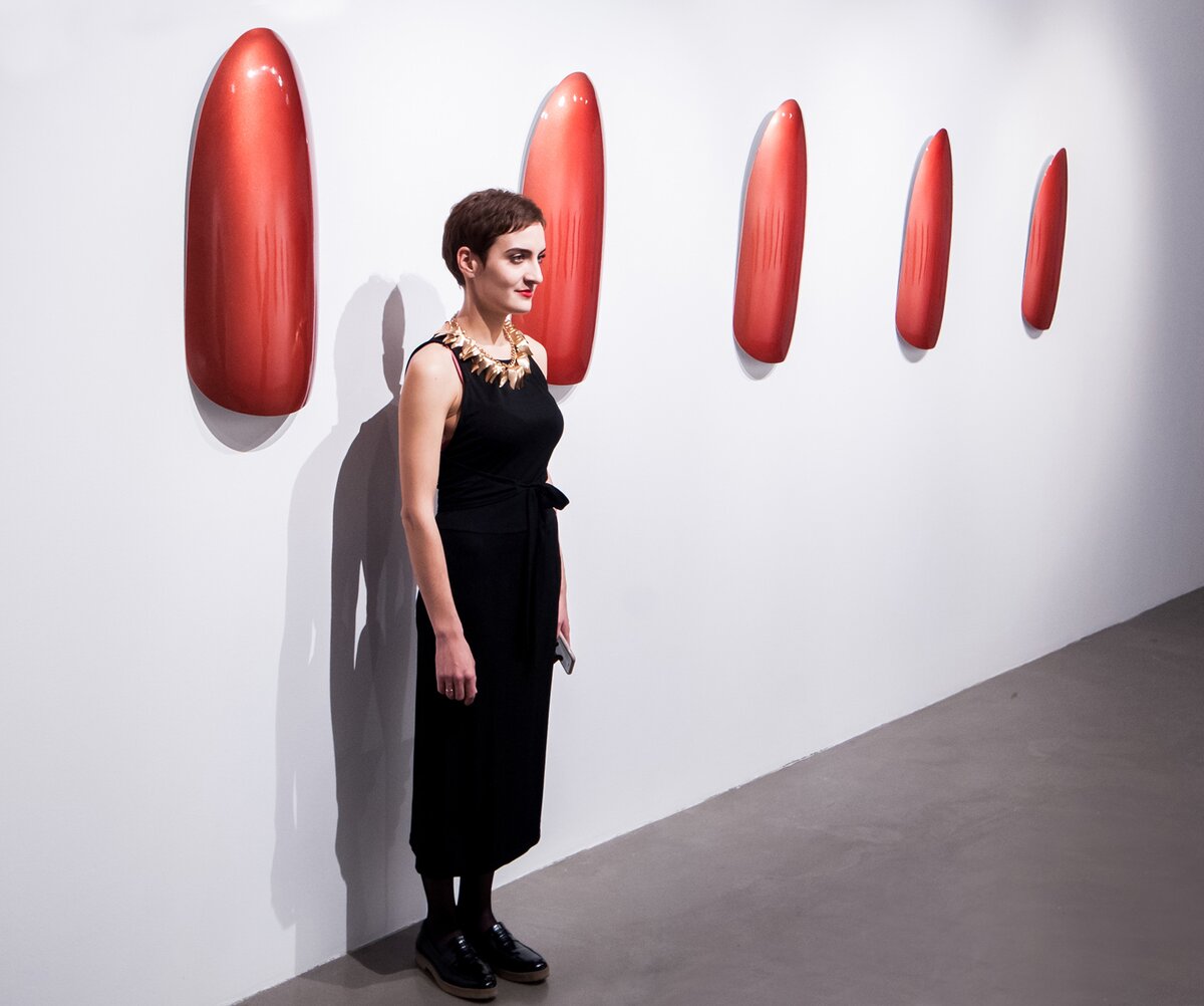 Гигантские ногти-холсты, олицетворяющие агрессивную сексуальность, глянцевые лужи разлитой на полу краски, в которых вот-вот завязнешь или утонешь – пространство выставки Елены Мартыненко напоминает фантастический салон красоты.