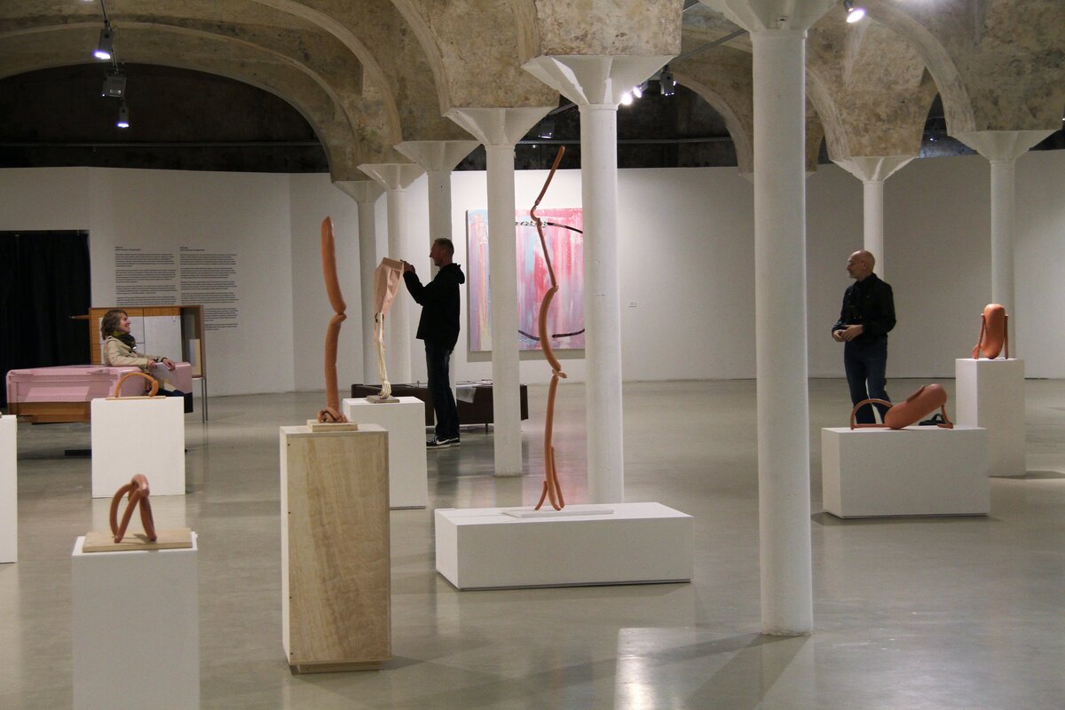 Традиционные "нетрадиционные" домики, серия из абстрактных работ в виде резиновых сарделек и сосисок, а также знаменитые drinking sculptures - интерпретации художника на тему винтажной мебели - все это в рамках выставки работ Эрвина Вурма, которая 5 сентября открылась на Винзаводе.