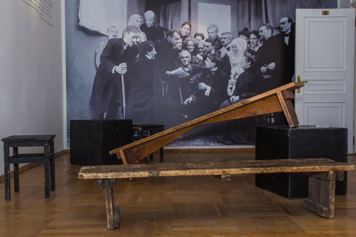 В Театральной галерее на Малой Ордынке открылась выставка "От простого к сложному", приуроченная к 100-летию Театрального института имени Бориса Щукина. В экспозиции представлены студенческий билет Андрея Миронова и черновики Юрия Любимова, фотографии первых спектаклей, аудио- и видеозаписи студенческих постановок и многое другое.