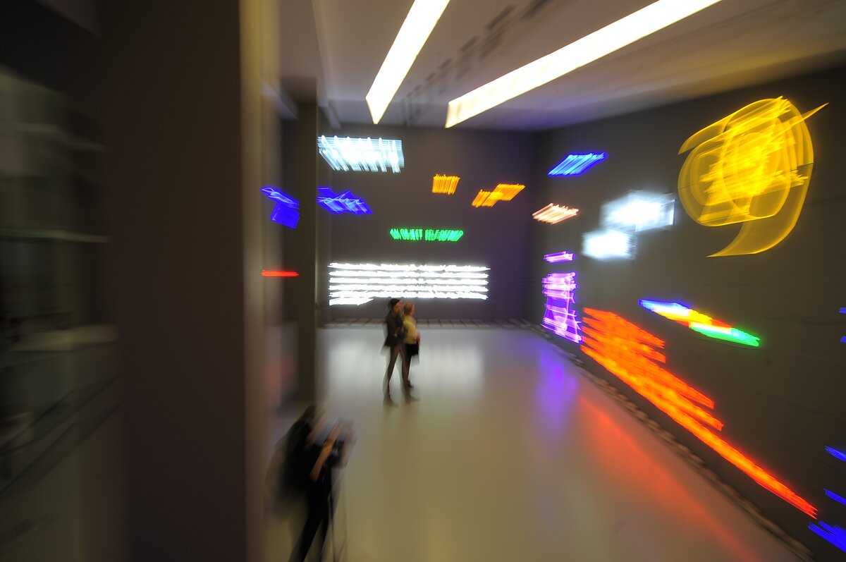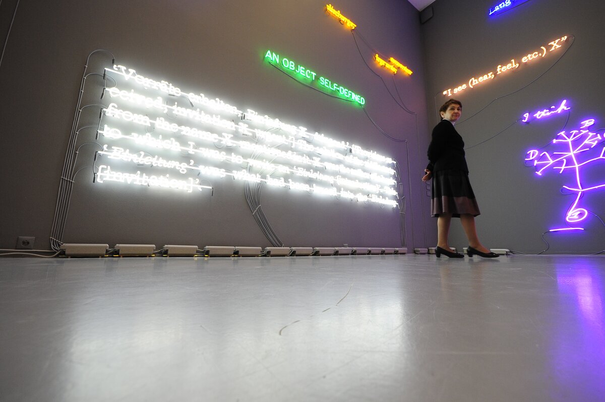 В Мультимедиа Арт музее открылась выставка Джозефа Кошута "Амнезия". Экспозиция включила в себя 25 неоновых работ, созданных между 1965 и 2011 годами.