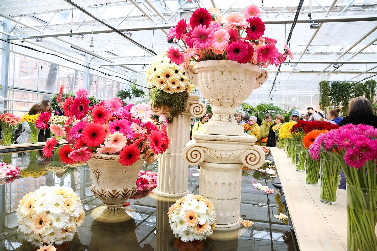 Торжественное открытие первой в России выставки гербер состоялось в Ботаническом саду МГУ "Аптекарский огород".