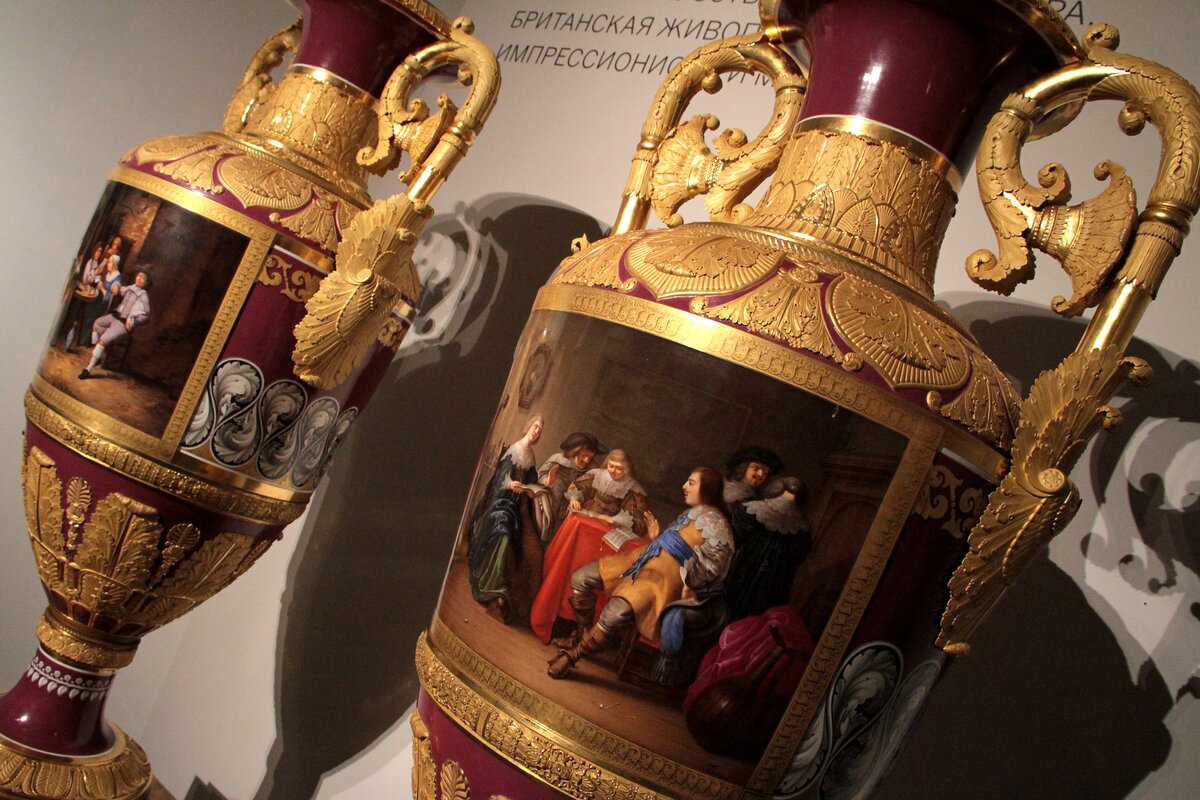 Пара фарфоровых ваз, изготовленных в период правления Николая I (1833 год), украшены репродукциями картин. Когда-то картины висели в Эрмитаже, но были утрачены 9/15Пара фарфоровых ваз, изготовленных в период правления Николая I (1833 год), украшены репродукциями картин. Когда-то картины висели в Эрмитаже, но были утрачены