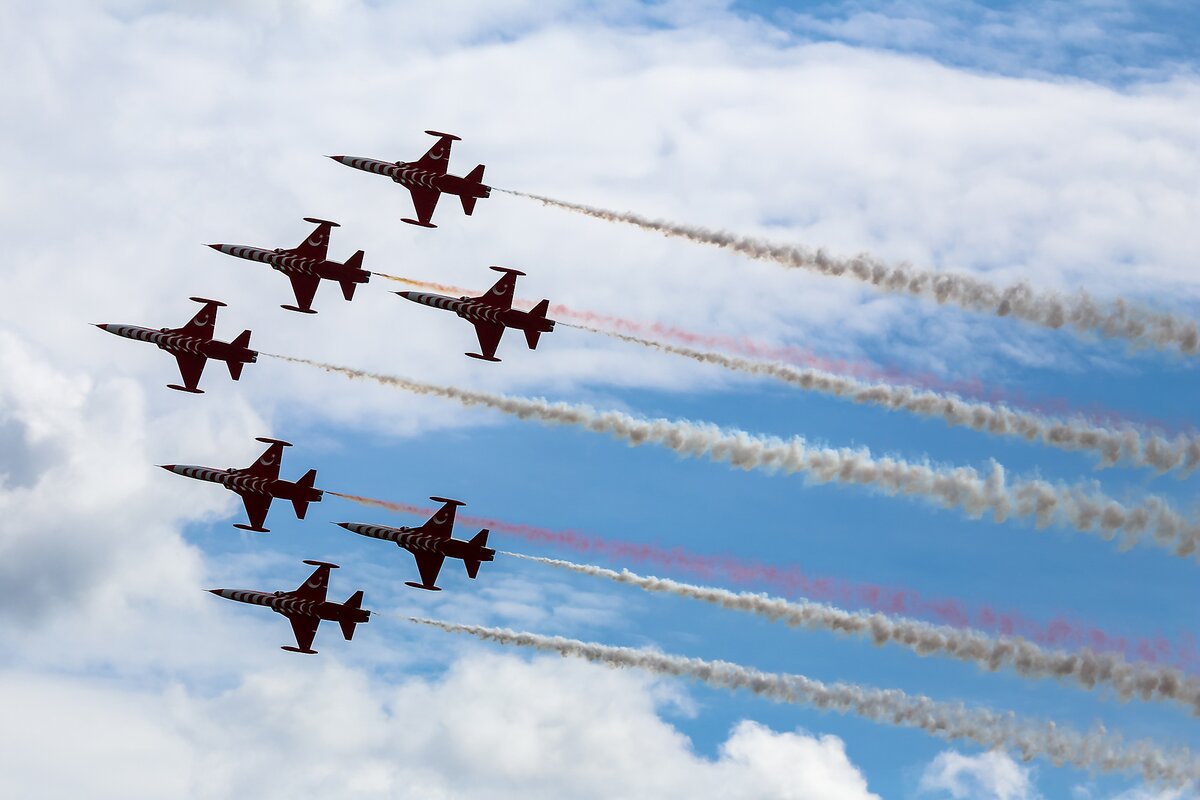 На авиабазе Кубинка в рамках Международного военно-технического форума "Армия-2017" прошли показательные выступления пилотажных групп "Турецкие звезды", "Русские витязи" и "Стрижи".