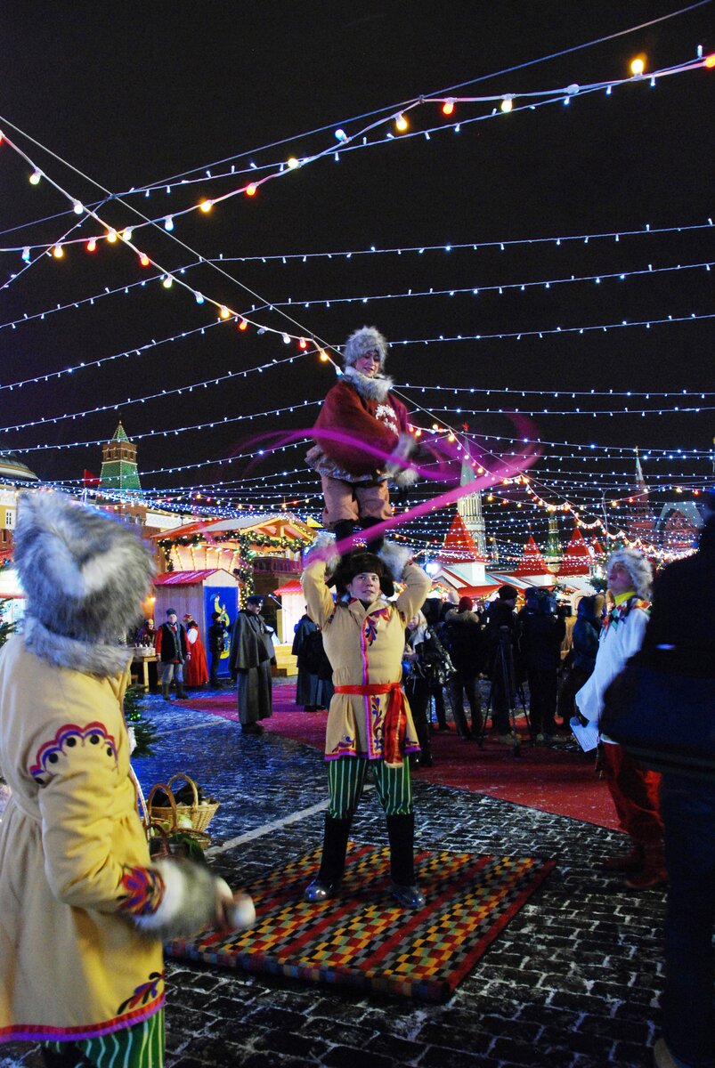 Впервые рядом с ГУМ-катком на Красной площади открылась Рождественская ярмарка. Ее гости попали в атмосферу 1893 года, когда состоялось открытие Верхних торговых рядов. Под знаменитые "Конфетки-бараночки" можно было попробовать сбитень с пирожками, прокатиться на карусели и посмотреть на петушиные бои. На катке организаторы воссоздали атмосферу романа "Анна Каренина".