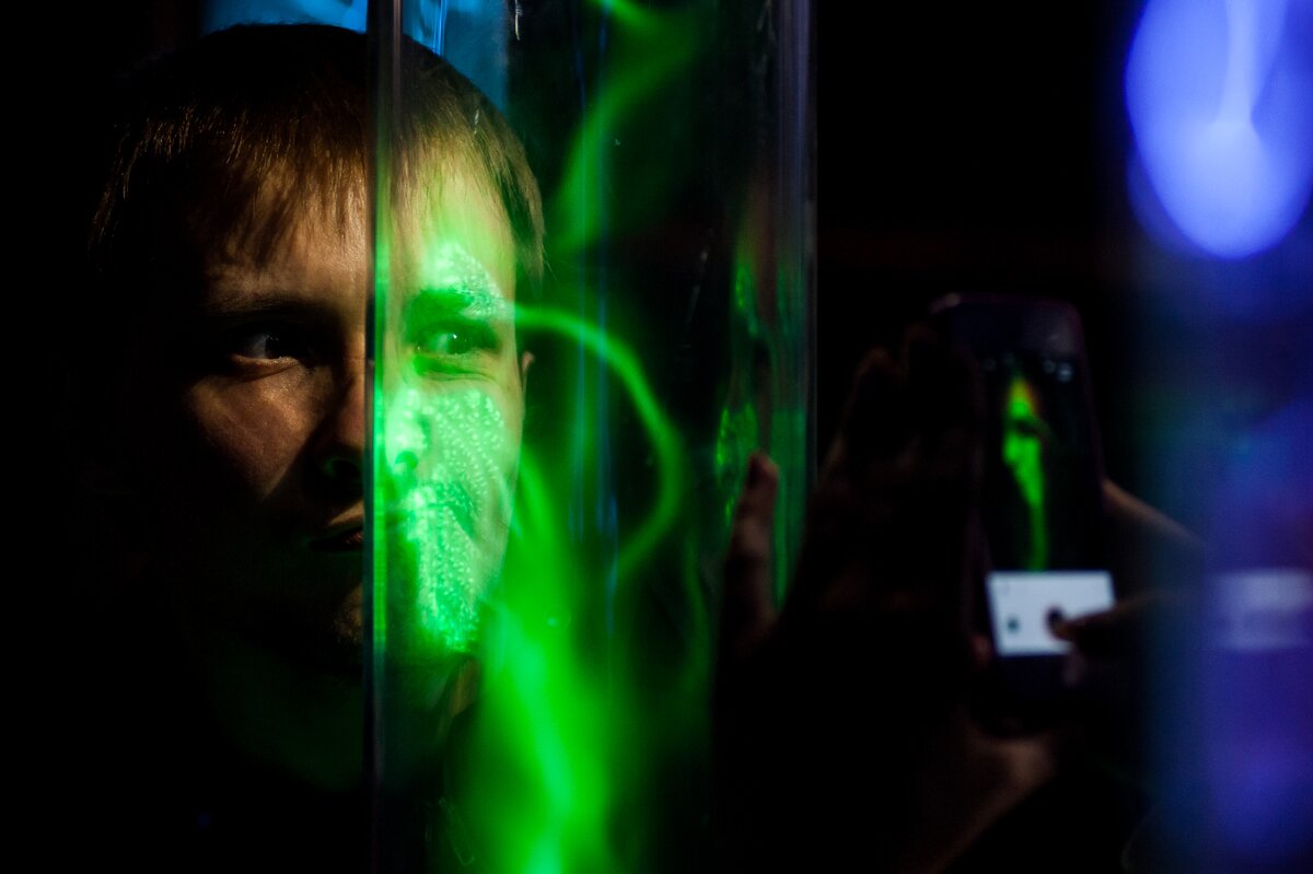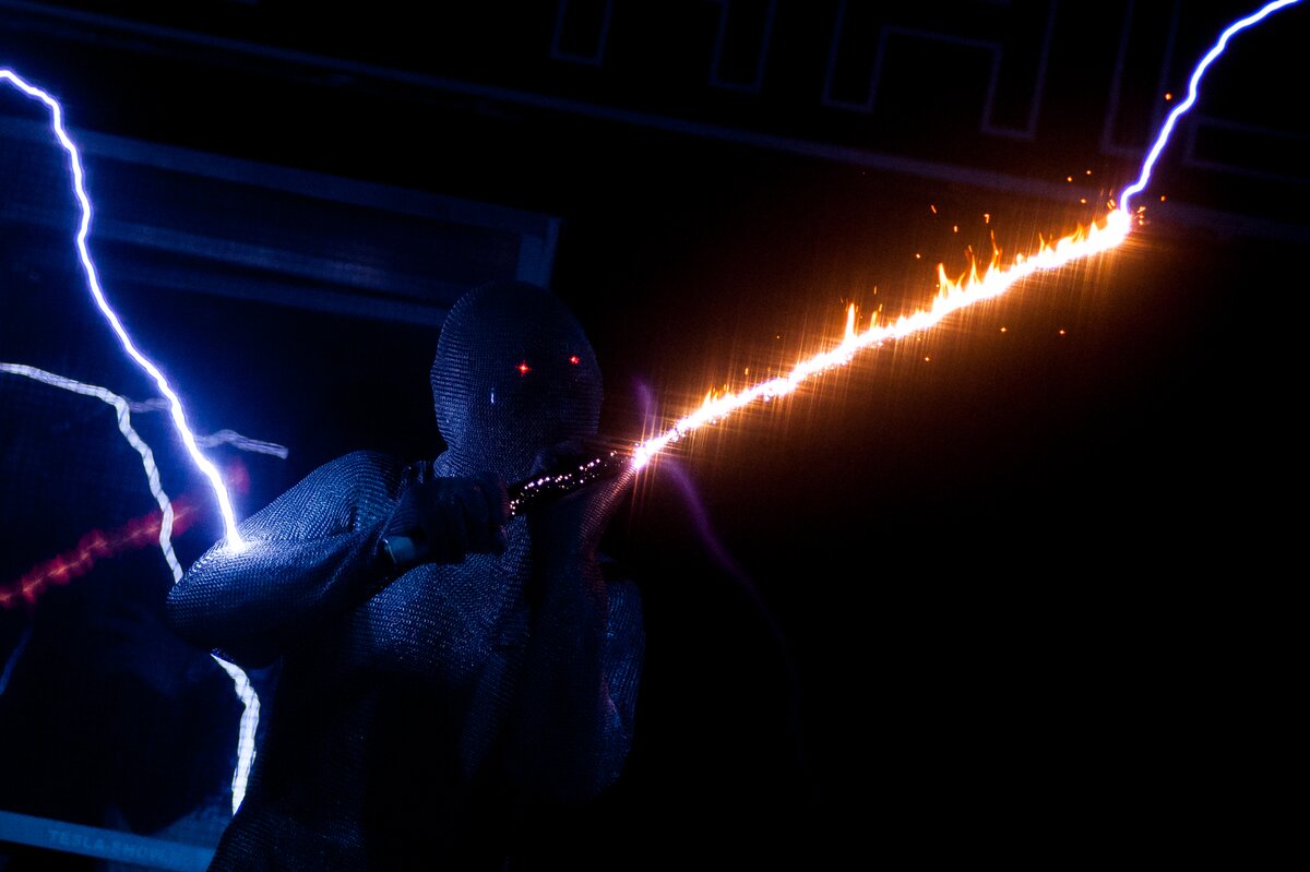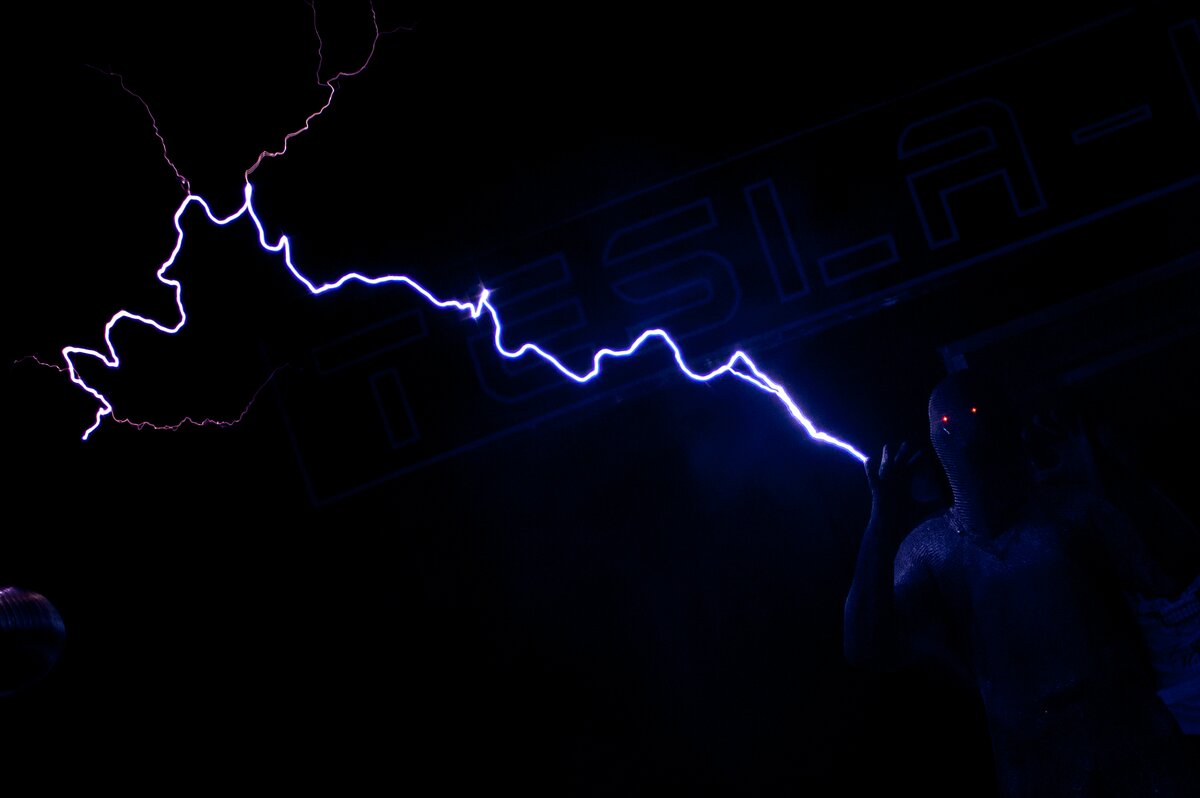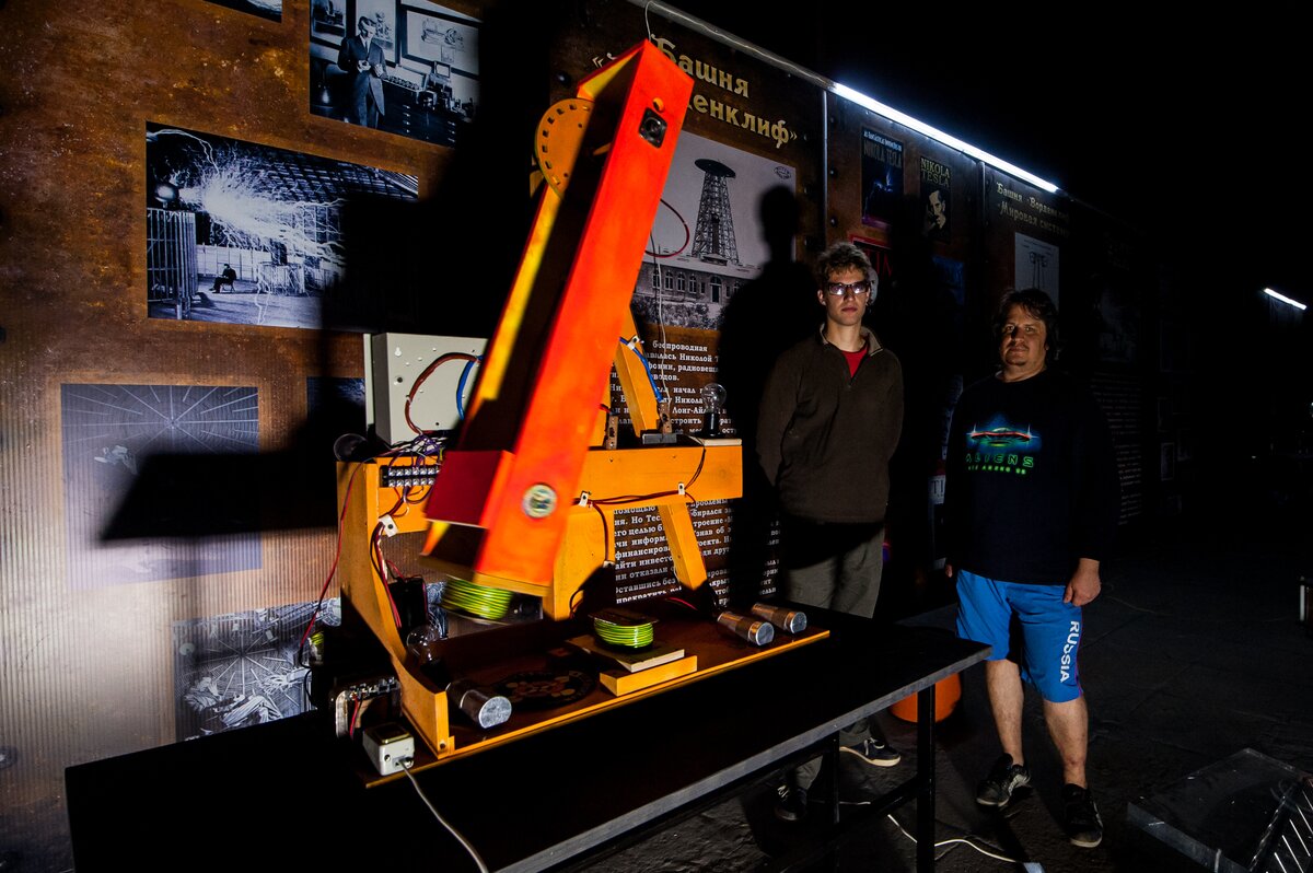 Гостям праздника показали самые настоящие молнии, ионный двигатель, плазменный громкоговоритель и многие другие изобретения Теслы. Кульминацией стало фееричное появление огромной светящейся дуги (лестницы Иакова).