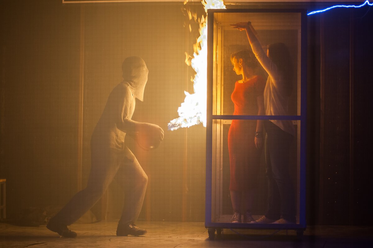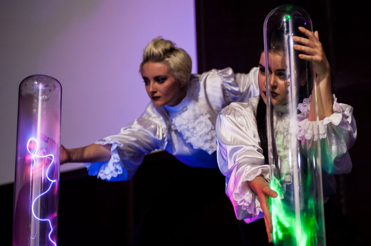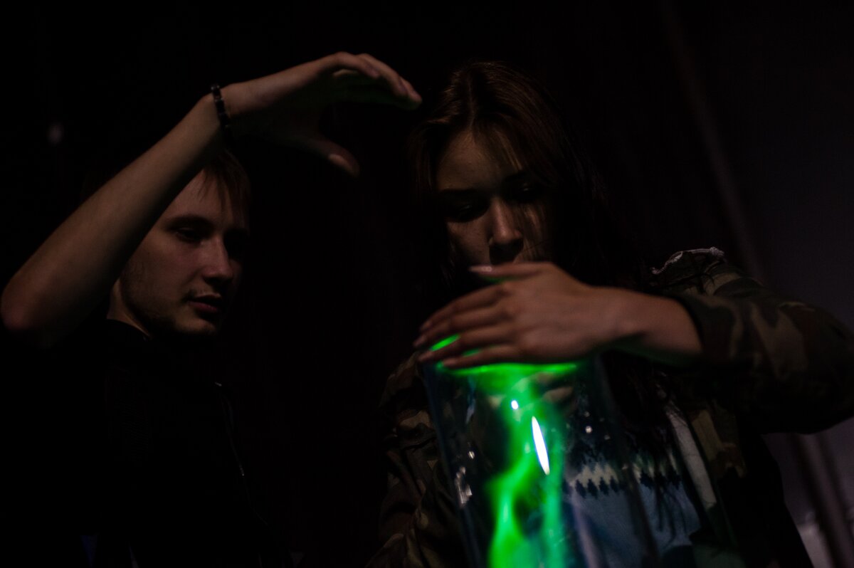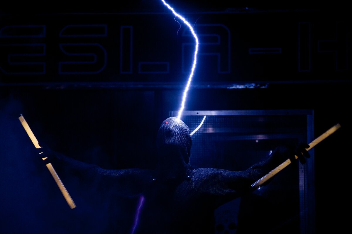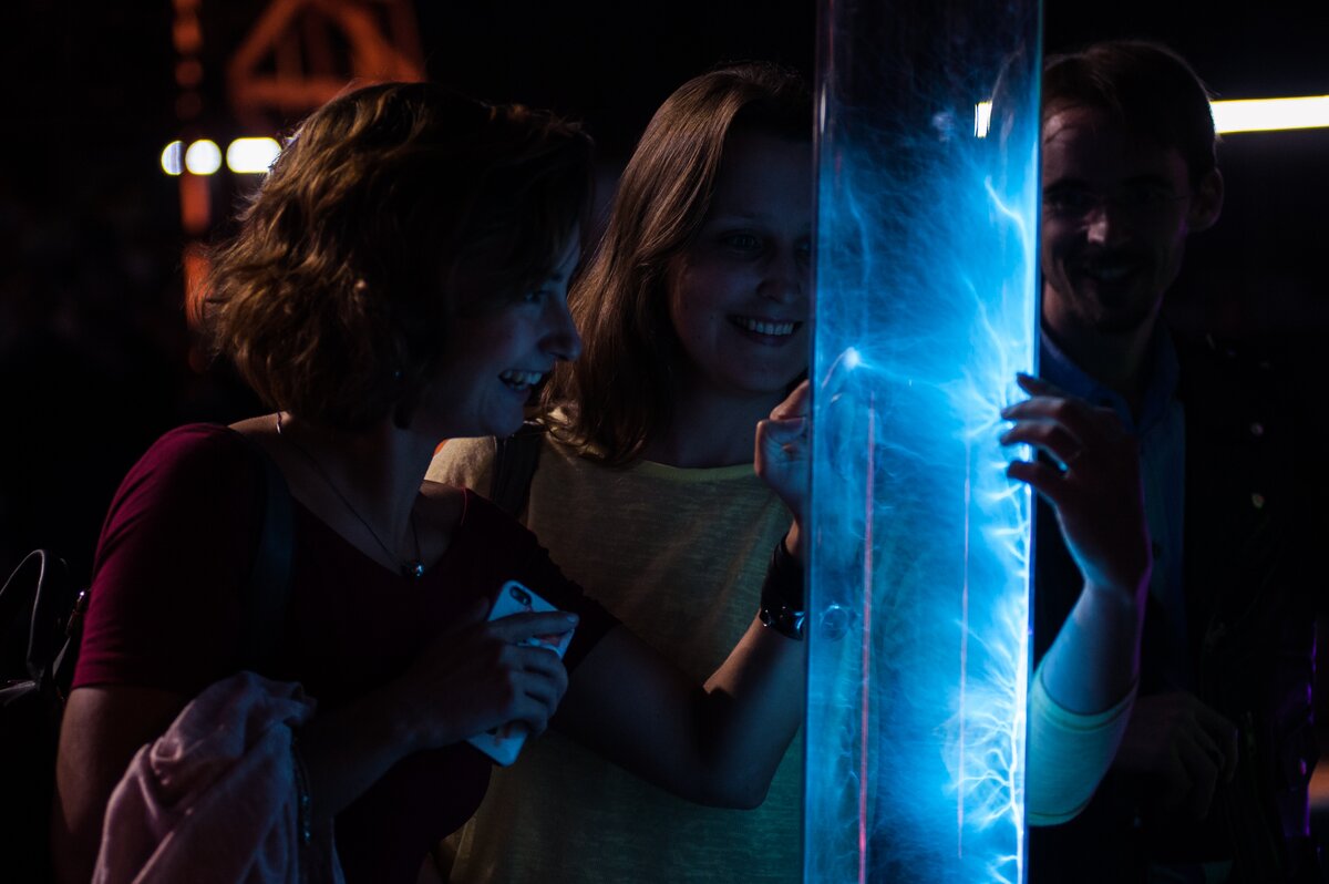 Гостям праздника показали самые настоящие молнии, ионный двигатель, плазменный громкоговоритель и многие другие изобретения Теслы. Кульминацией стало фееричное появление огромной светящейся дуги (лестницы Иакова).