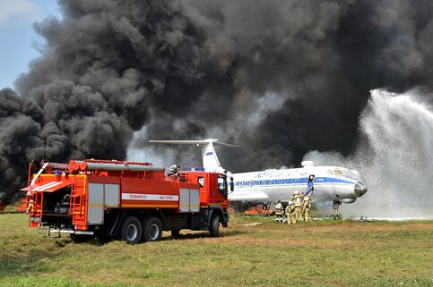 В преддверии международного авиашоу "МАКС-2013" пожарные и спасатели провели совместные учения по тушению пожаров и ликвидации чрезвычайных ситуаций.