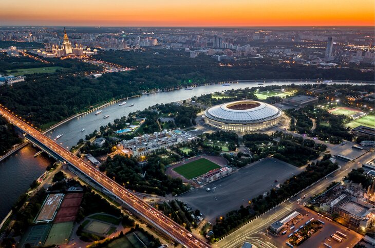 На верхнем уровне стадиона была оборудована смотровая площадка. С нее открывается прекрасный вид на центр столицы и живописные здания Сити и МГУ.