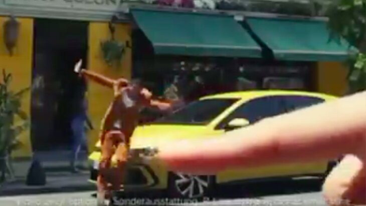 На видео мужчину, который стоял рядом с желтым авто, одна рука подняла двумя пальцами в воздух, а затем другая щелчком пальцев откинула от транспортного средства. В дальнейшем зрители увидели надпись "Новый Golf".