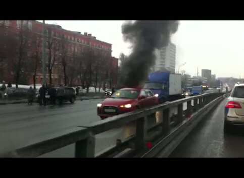 Авария произошла на Варшавском шоссе вечером в пятницу. Столкнулись два легковых автомобиля, один из которых загорелся.