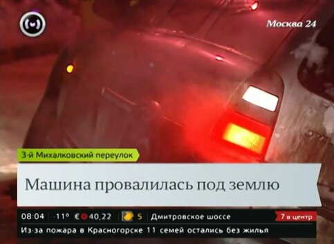 Вечером 23 января на севере Москвы под автомобилем провалился асфальт.