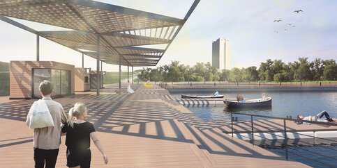 На искусственных берегах сделают смотровую площадку с видом на парк, обустроят места для рыбалки и построят новую лодочную станцию с причалами. Отдохнуть у воды можно будет на лежаках с навесами. У пруда также обустроят танцевальную площадку, в зимнее время она будет превращаться в каток площадью 720 кв. метров.