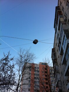 Читатель M24.RU прислал в редакцию фотографию пенька, который висит на проводах высоко над землей.