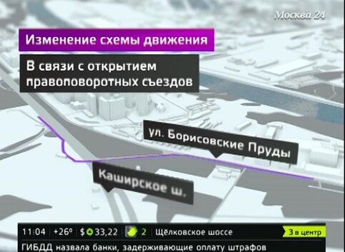 При движении по Каширскому шоссе в центр для поворота на Борисовские Пруды также необходимо заехать в новый правоповоротный съезд.