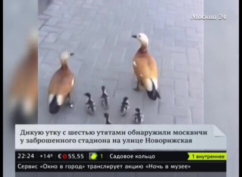 Сегодня дикую утку с шестью утятами обнаружили у заброшенного стадиона на улице Новорижская, сообщает телеканал "Москва 24".