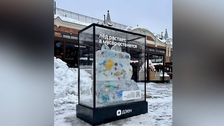 Инсталляция "Лед растает, а мусор останется" появилась в Москве ко Дню Арктики, который отмечается 28 февраля. Об этом сообщила пресс-служба Дзена.