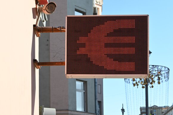 К 14:49 по московскому времени курс евро демонстрировал снижение на 8,68%, опустившись до 50,72 рубля. К 14:55 по московскому времени он замедлил падение до 5,84% и торговался на уровне 52,3 рубля.