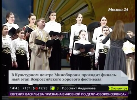 В культурном центре Минобороны на Суворовской площади проходит финальный этап Всероссийского хорового фестиваля, сообщает телеканал "Москва 24".