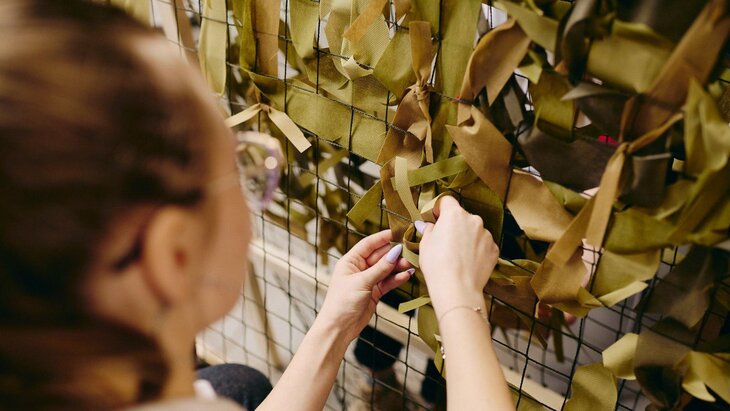 В рамках мастер-классов можно узнать о назначении маскировочных сетей и технологиях их изготовления. Опытные волонтеры рассказывают, как выбрать материалы. В начале занятия распределяются задачи, подготавливается ткань и нарезаются лоскуты, участники осваивают техники крепления лент к специальной сетке, вязания прочных узлов и способы фиксации.