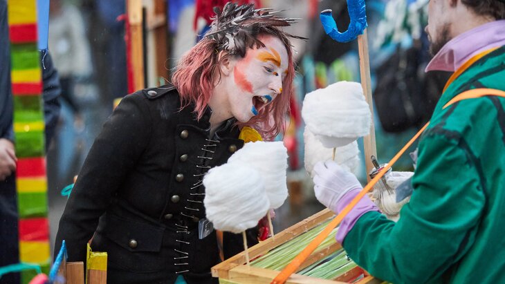 Посетители фестиваля не только увидят шоу мыльных пузырей и выступления артистов уличного театра, но и побывают в зеркальном лабиринте, комнате страха и воображариуме. Шоу "Чокнутый профессор" позволит погрузиться в мир науки, а любителей животных будут ждать в особой фотозоне "Мини-зоопарк".
