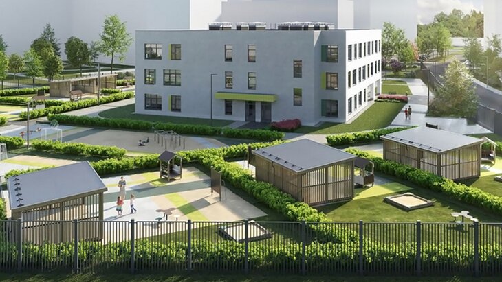 Прилегающую к детсаду территорию планируется озеленить, высадив здесь липы, клены, кусты сирени, пурпурной ивы, чубушника, а также создав живую изгородь из пузыреплодника.