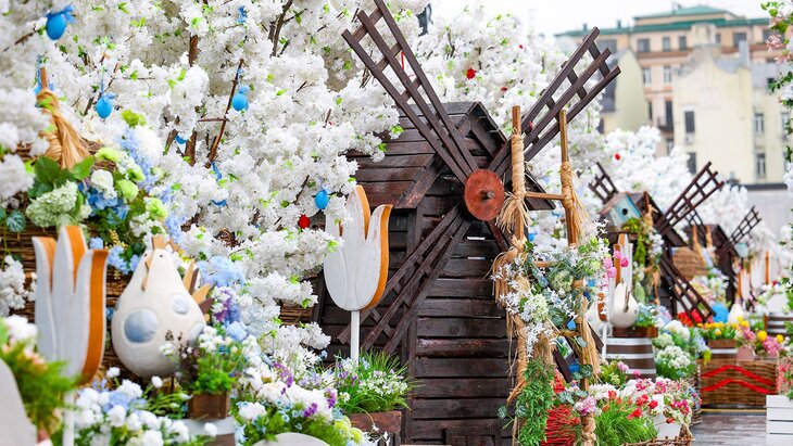 Цветочные тоннели и инсталляции появились у храмов и парков Москвы к Пасхе