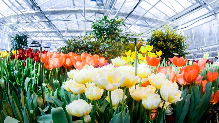 В пресс-службе сада отметили, что экспозиция представляет собой крупнейшую в России выставку тюльпанов и других весенних растений.