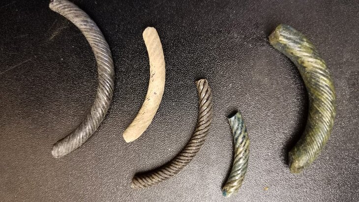 Из самых древних артефактов Емельянов выделил женские стеклянные браслеты XII века, обнаруженные на Ильинке.