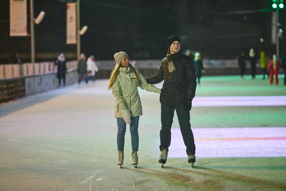 Как уточняется, на катке одновременно могут кататься 1,5 тысячи человек. Для посетителей работает пункт проката спортивного инвентаря, кафе, туалеты.