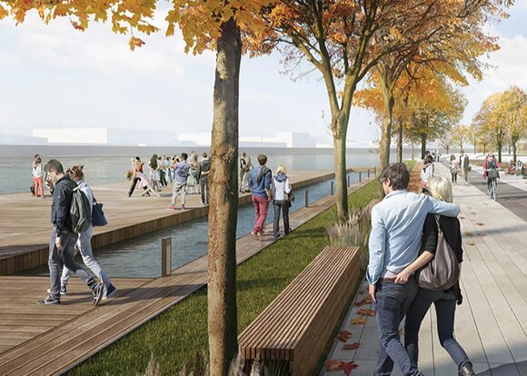Реконструкция затронет участок протяженностью порядка 2,6 тысячи квадратных метров. В результате на обновленной набережной появятся новые тротуары, площадки для отдыха и велодорожки. Еще там предусмотрят террасы, площадки летних кафе.