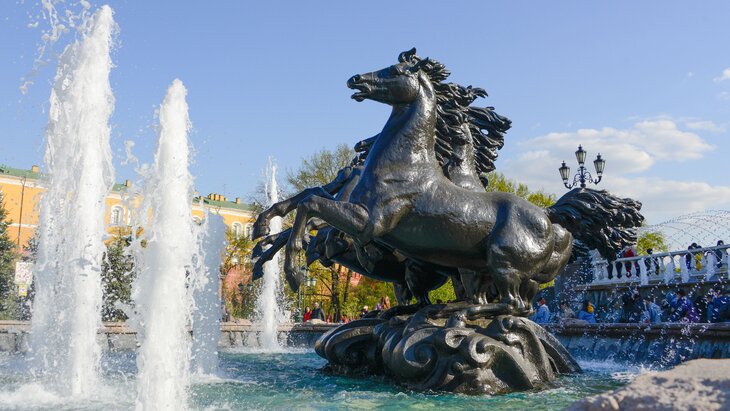 ГородВ Москве промыли фонтанный комплекс на Манежной площади