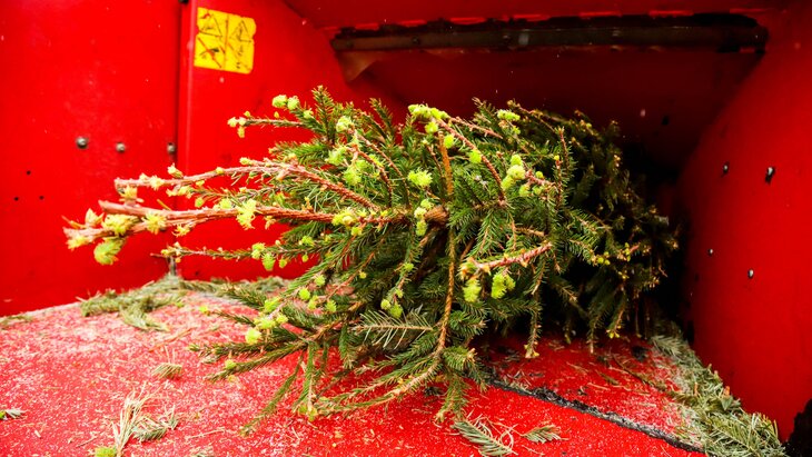 Новогодние деревья отправляют на утилизацию и перерабатывают в щепу, которую используют в качестве удобрения для почвы, подстилки для животных и покрытия для экологических троп.