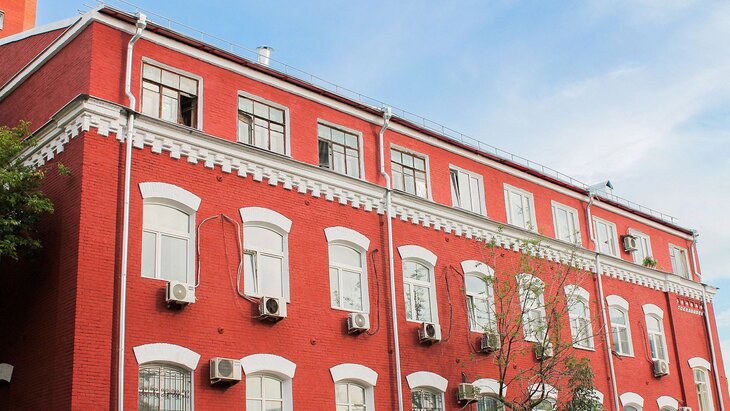 В 2024-м прошли работы по обновлению его фасада и некоторых инженерных систем. При этом первоначальный облик дома сохранен. Сначала специалисты промыли здание, затем восстановили швы, участки кирпичной кладки и плитки. После этого была отремонтирована штукатурка и проведена обработка водоотталкивающим слоем.