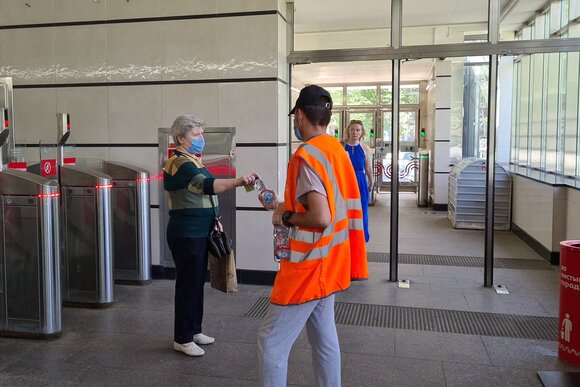 ТранспортПассажирам столичного метро и МЦК начали раздавать воду из-за жары