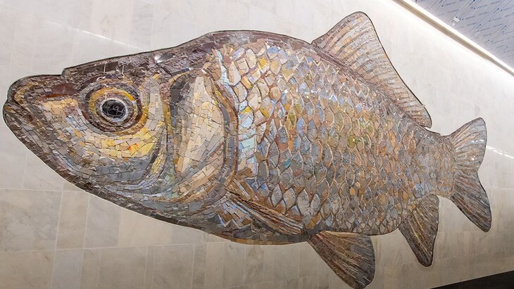 Всего на станции, по словам Бочкарева, расположат 12 панно в виде рыб. Среди уже готовых – "Карась", "Бычок", "Ротан", "Голавль", "Щука", "Уклейка", "Налим" и "Окунь". Из числа оставшихся – "Судак", "Лещ", "Плотва" и "Головастик".