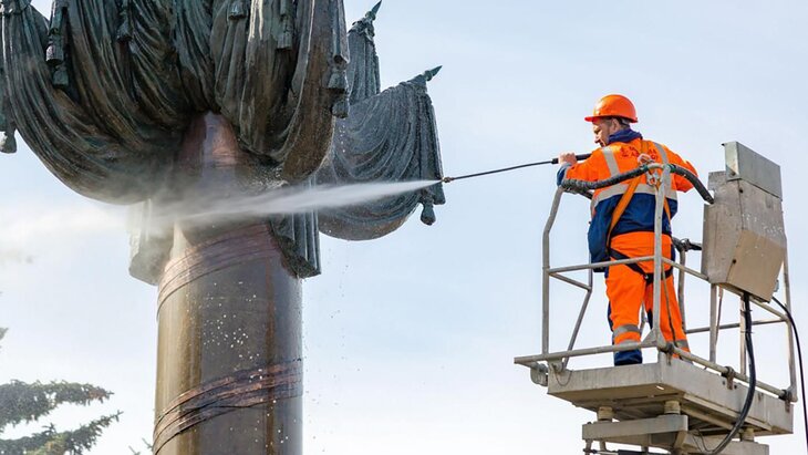По его словам, к работам специалисты комплекса городского хозяйства приступили после установления постоянных круглосуточных положительных температур воздуха. Для каждого памятника применяется особая технология в зависимости от его материала. В работах также задействованы поливочные машины и автогидроподъемники.