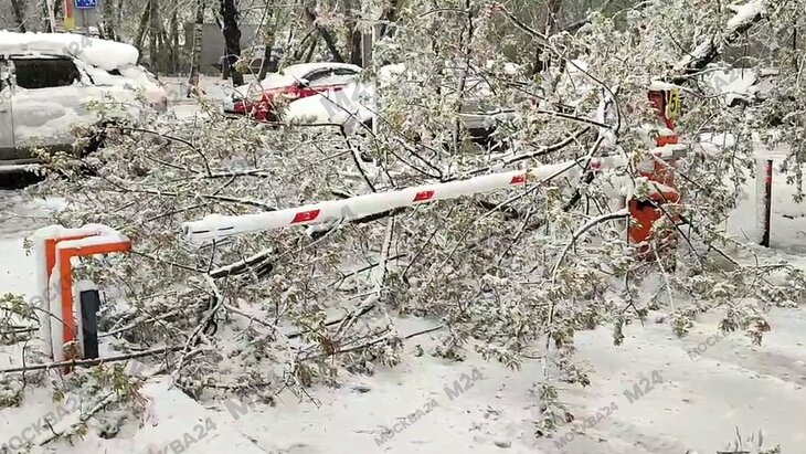 Деревья надломились под тяжестью снега в Москве