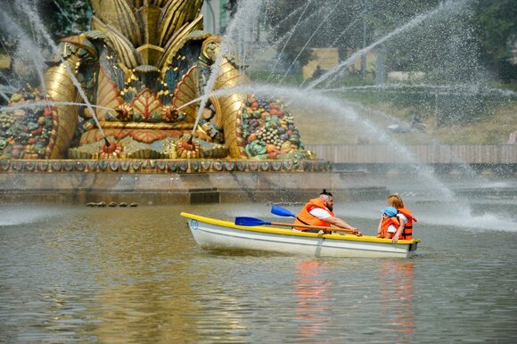 Посетители, которые будут кататься на лодках, смогут вблизи рассмотреть фонтан "Золотой колос". Водная 16-метровая конструкция включает 66 струй, 30 из которых достигают 25 метров в высоту.