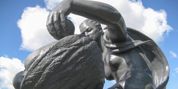 На территории стадиона они появились только в середине 1960-х годов. Скульптуры стоят у входа на Фестивальную площадь со стороны Лужнецкой набережной.