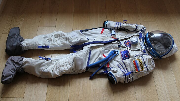 В объявлении говорится, что скафандры "Сокол" вместе с бортовыми системами корабля необходимы для обеспечения жизни и работоспособности участника космического полета. Комплект весит 10,5 килограмма и включает в себя шлем, гарнитуру, перчатки и стартовые сапоги.