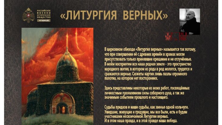 С 13 ноября жители и гости столицы могут посетить выставку "Литургия верных" художника-живописца, члена Союза художников России Владимира Киреева. Она открылась на Гоголевском бульваре. Об этом рассказал член Совета регионального отделения Российского военно-исторического общества (РВИО) в Москве Михаил Швыдкой.