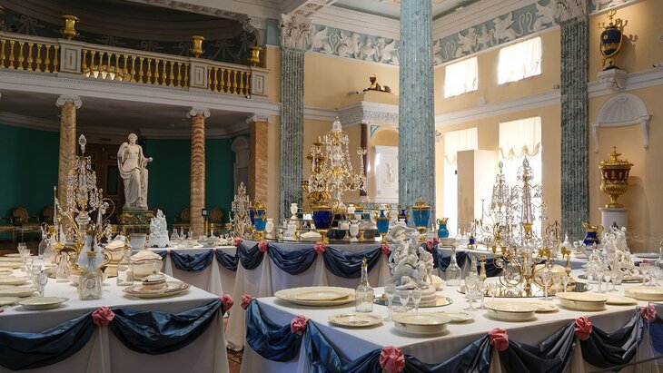 После окончания работ в павильоне снова будет представлена экспозиция "В гостях у графа Шереметева", органично вписанная в окружение. Выставка воссоздает атмосферу праздничного застолья в усадьбе и знакомит с фарфоровыми, фаянсовыми и стеклянными предметами, украшавшими торжества 1795–1801 годов.