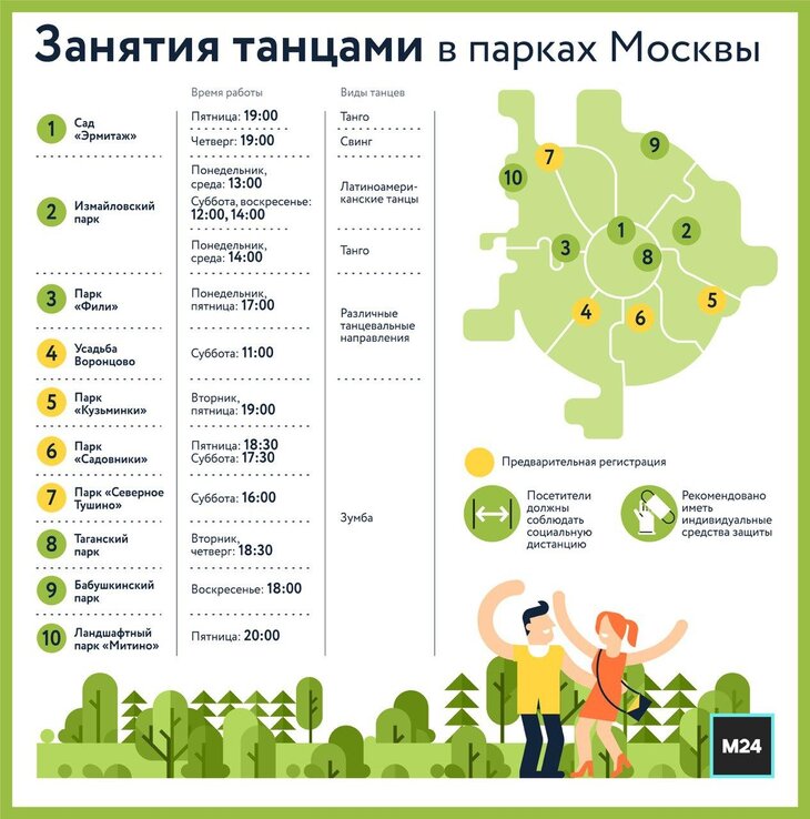 В некоторых столичных парках есть музыкальные площадки для танцев и музицирования. Об этом сообщает портал мэра и правительства Москвы.