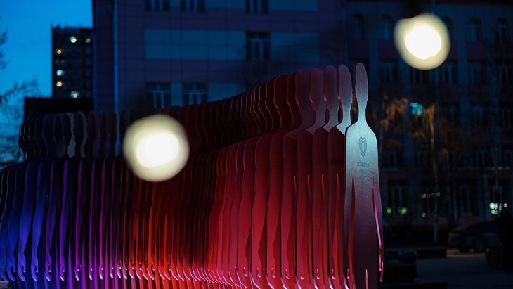Арт-объект в виде многослойного силуэта человека воплощает идею экспозиции – поддержку, присутствие и сопричастность. Его автором выступила команда творческой экосистемы "САБСТАНЦИЯ".
