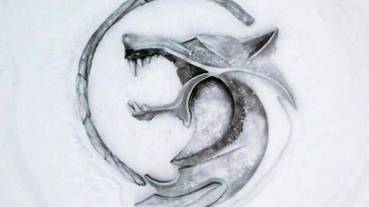Специалисты создали на снегу медальон главного персонажа Геральта. Его также называют Белым Волком.