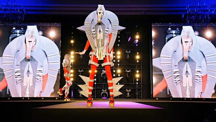 В костюмах можно увидеть традиционные элементы, такие как юрты и дацаны, и футуристические здания, напоминающие фантастические сооружения.