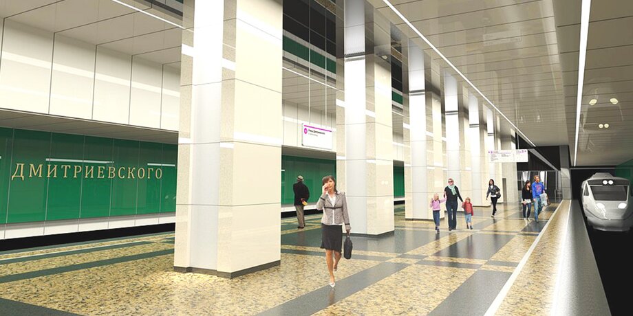 Станция "Улица Дмитриевского" расположена вдоль одноименной улицы. Это станция с островной платформой, одним рядом колонн и двумя вестибюлями, выходы из которых ведут к жилой застройке и остановкам наземного транспорта. Тема, обыгранная дизайнерами станции, – лунная дорога. Интерьер выполнен в светлых и теплых оттенках – белом, бежевом, серо-коричневом. Пол украшает геометрический орнамент из желтого и темно-серого гранита.